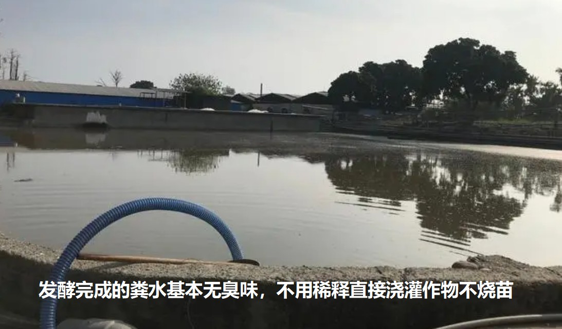 一般發酵15天左右糞便都大部分化解且臭味基本消除,可以直接澆灌不燒苗,也可以根據不同作物稀釋后澆灌或過濾后滴灌。