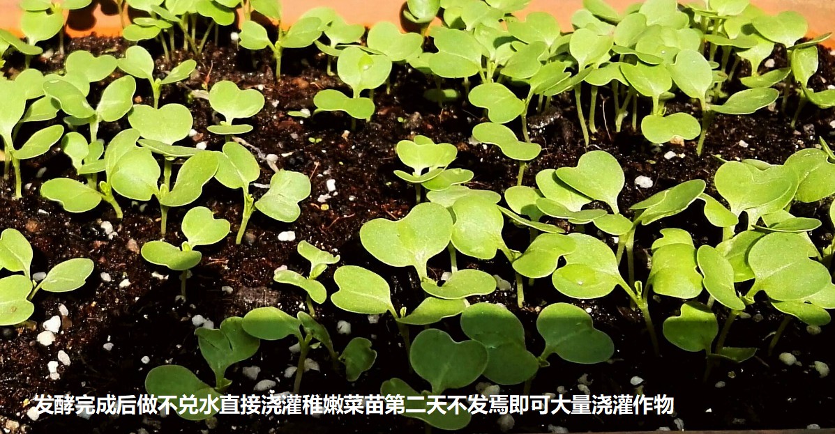 要注意的是,糞水還田前1-2天測試后再還田,具體測試方法是:將經過“畜禽流體糞污快速發酵劑”發酵后的糞水在還田前進行先測試,如果糞水近距離聞臭味(特別是氨氣味)不明顯,將少量糞水直接(不兌水)澆灌幼嫩作物(如幼嫩的蔬菜苗),24-48小時試驗作物不發蔫,即可進行安全澆灌。