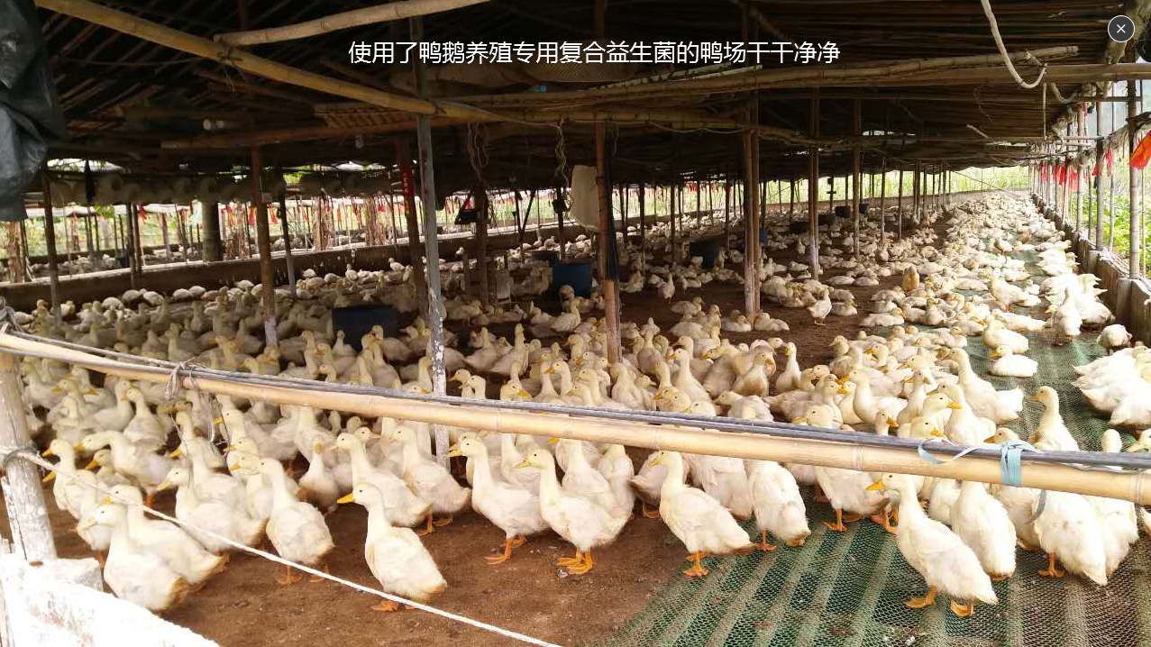 同事,使用鴨鵝養殖專用復合益生菌后,鴨場的環境得到了顯著的改變,養殖場腥臭味明顯下降(包括水池)。