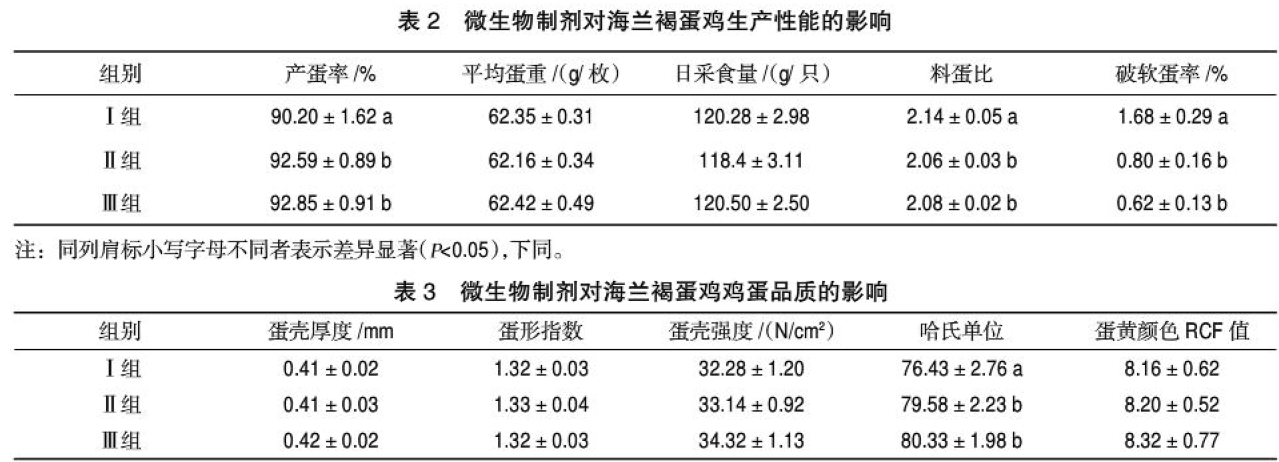 3.1微生物制劑對蛋雞生產性能的影響