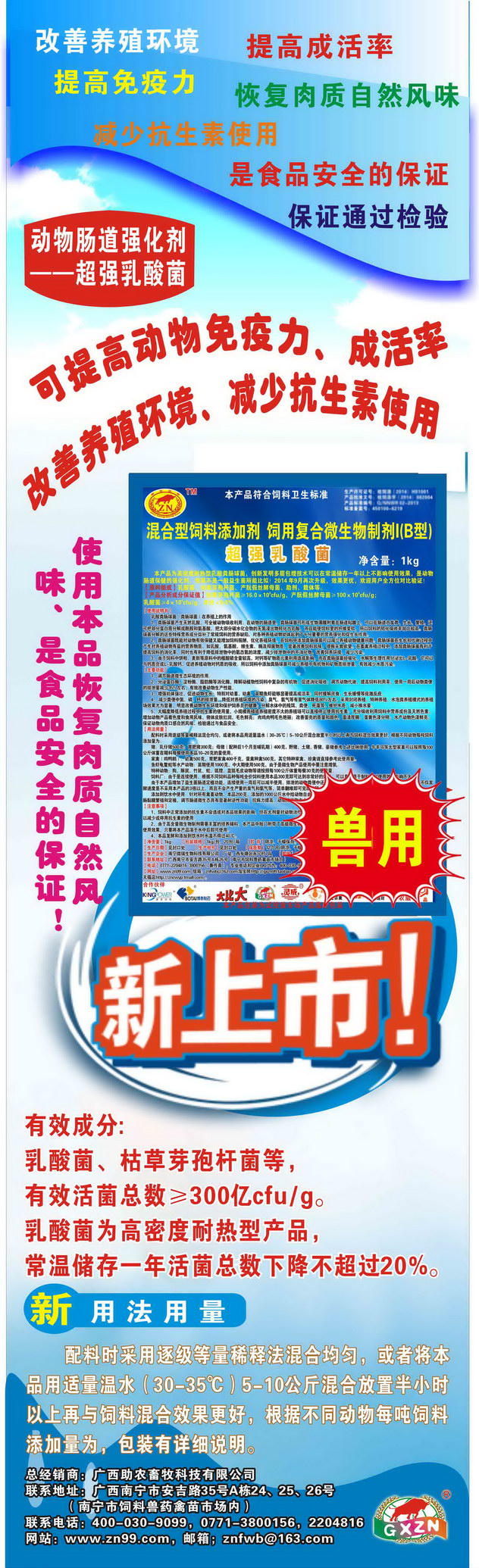 2. 超強乳酸菌:推薦母畜和仔豬使用,動物腸道的硬化劑,專業乳酸菌功能性產品,對動物的腸道有非常顯著的保健效果。