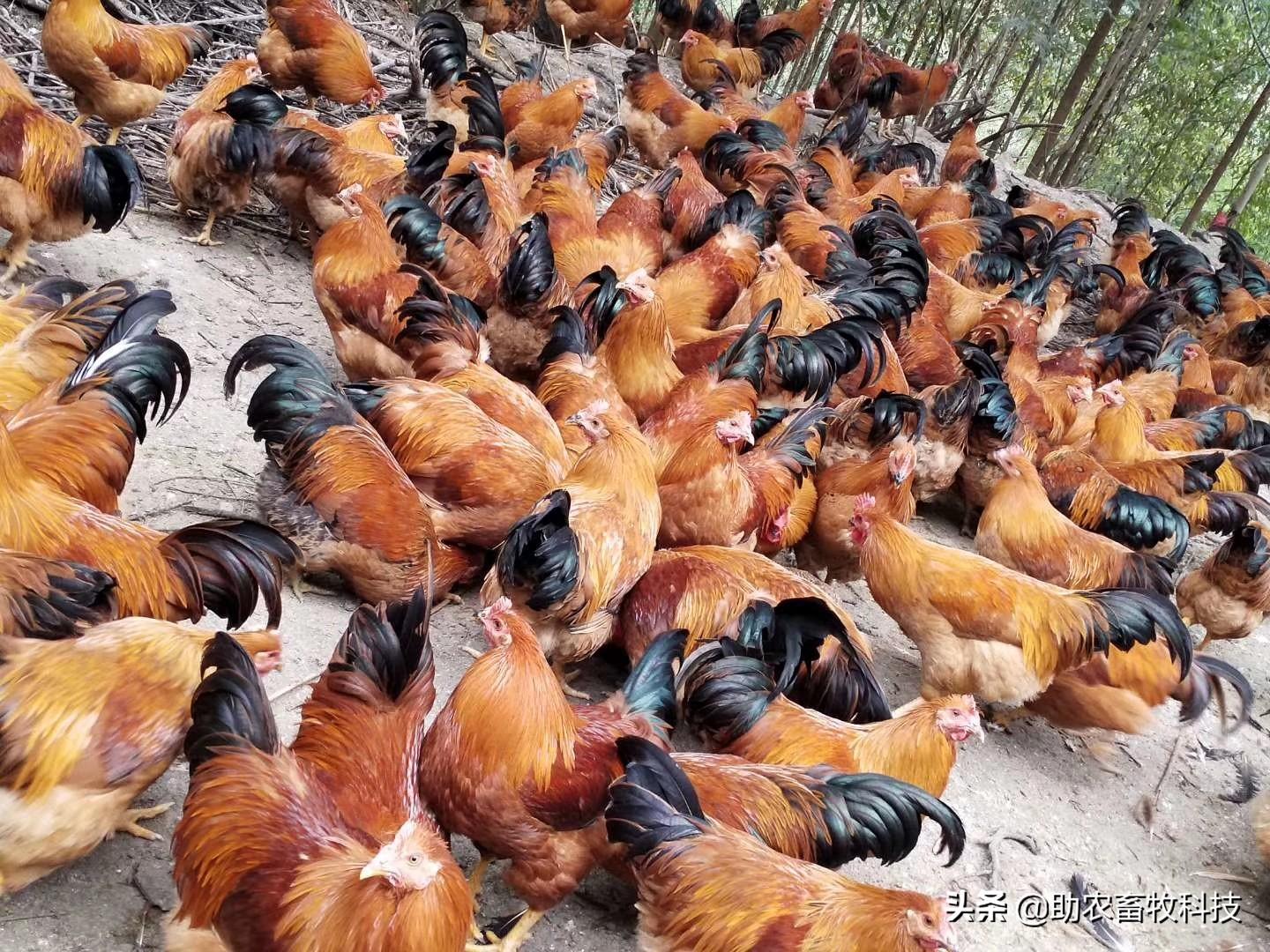 ↑運用發(fā)酵中草藥的閹雞毛色鮮艷并且可以高密度養(yǎng)殖但雞場基本無臭味